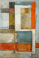 Dit opvallende abstracte kunstwerk combineert een gedurfde mix van geometrische vormen en levendige kleuren die onmiddellijk de aandacht trekken. De rechthoeken en lijnen creëren een dynamisch en intrigerend patroon dat perfect is voor moderne interieurs. Het palet van oranje, blauw, wit, bruin en beige brengt een gevoel van balans en…
