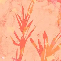 Moderne abstracte hedendaagse kunst. Penseelstreken lijnen en bladeren in warme kleuren.