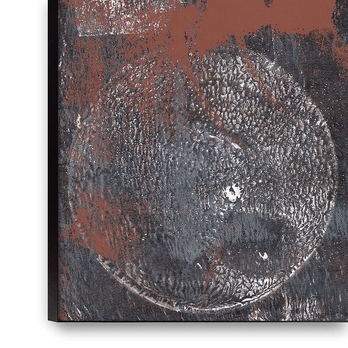 Koop dit abstracte kunstwerk Moderne abstracte kunst. Geometrische vormen in zwart, grijs, terra van Dina Dankers op canvas, aluminium dibond, (ingelijste) fotoprint, behang en ArtFrame, op maat geprint in Fine-Art kwaliteit.
