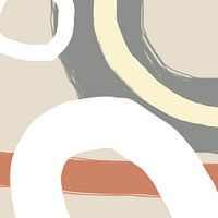 Organische vormen, cirkels en vloeiende lijnen creëren een rustig visueel ritme, waarbij expressieve beweging wordt gecombineerd met gestructureerd minimalisme. De digitale texturen weerspiegelen traditionele media met behoud van een verfijnde, moderne uitstraling.