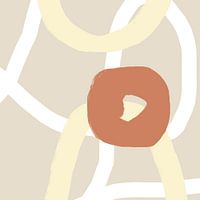Organische vormen, cirkels en vloeiende lijnen creëren een rustig visueel ritme, waarbij expressieve beweging wordt gecombineerd met gestructureerd minimalisme. De digitale texturen weerspiegelen traditionele media met behoud van een verfijnde, moderne uitstraling.