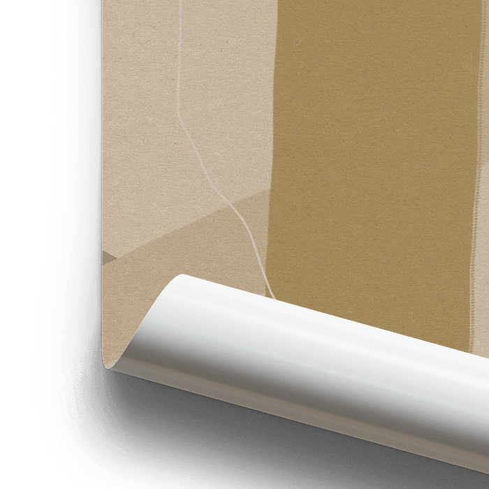 Bloem. Botanische illustratie in retrostijl in wit op roestbruin grijsDina Dankers Japandi. Abstract landschap met gouden zon en vogels op Japans patroon in okergeelDina Dankers