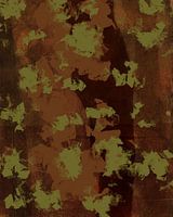 Organische vormen en penseelstreken op getextureerde achtergrond.