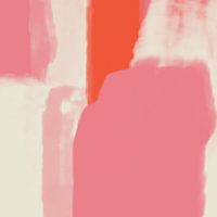 Modern abstract digitaal schilderij in roze, oranje en wit.