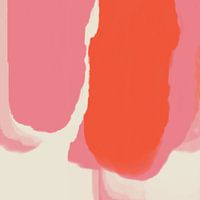 Modern abstract digitaal schilderij in roze, oranje en wit.