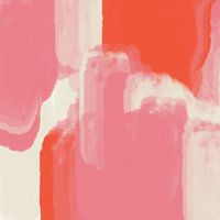 Modern abstract digitaal schilderij in roze, oranje en wit.