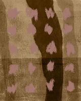Organische vormen en penseelstreken op getextureerde achtergrond.