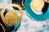 Een fascinerend samenspel van rijke kleuren en dynamische vormen betovert de kijker. De gedurfde gouden accenten voegen een vleugje elegantie toe, terwijl de harmonieuze blauwe tinten levendigheid uitstralen. Ideaal voor een moderne woonkamer, waar het niet alleen de muren siert, maar ook gesprekken stimuleert en sfeer creëert.