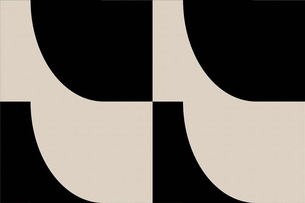 Moderne abstracte minimalistische kunst. Geometrische vormen in zwarte en gebroken witte kleuren. Geïnspireerd door Bauhaus stijl. Subtiele linnen textuur is toegevoegd voor een retro look. Basic, Modern, Scandinavisch, Minimalistische interieurstijl.