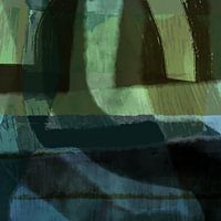 Moderne abstracte digitale kunst geïnspireerd door Scandinavische natuur.Vormen en lijnen in groen, bruin en blauw.Design, Modern, Industrieel, Scandinavisch, Boheemse interieurstijl.