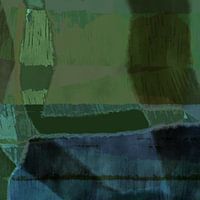 Moderne abstracte digitale kunst geïnspireerd door Scandinavische natuur.Vormen en lijnen in groen, bruin en blauw.Design, Modern, Industrieel, Scandinavisch, Boheemse interieurstijl.