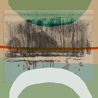 Dit kunstwerk combineert een schets van de Nederlandse kunstenaar Willem Witsen, papiertexturen, penseelstreken en geometrische vormen. Pastelkleuren in neutraal palet, delicate potloodlijnen creëren een lyrische, rustige indruk. Scandinavisch, Basic, Modern chic, Industriële interieurstijl. In bruikleen uit het Willem Witsenhuis Schetsboek met 43 pagina's, Willem Witsen, ca. 1887 - ca. 1888 Landschap met bomen, Willem Witsen, ca. 1887 - ca. 1888. Rijksmuseum Amsterdam