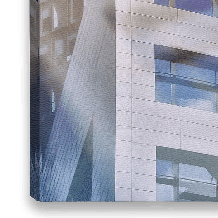 Moderne architectuur, gefotografeerd in Brussel in de buurt van het Europees Parlement. Dubbele belichting toegepast. Past perfect in een modern, strak interieur.