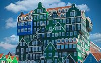 Dit unieke bouwwerk met de in het oog springende gevel bestaat uit een opeenstapeling van bijna zeventig losse Zaanse huisjes, uitgevoerd in vier kleuren Zaans groen. Dissonant is het blauwe huis in de linkerbovenhoek, dat is geïnspireerd op het gelijknamige schilderij dat Claude Monet in 1871 in Zaandam schilderde.