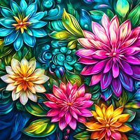 Op dit moderne werk knallen de abstracte bloemen eruit als een explosie van kleur en creativiteit! ?? Elk bloemblaadje lijkt een eigen verhaal te vertellen, een speelse mix van tinten die samen dansen op het canvas. Het is alsof je in een kleurrijke droom stapt, waar de lijnen en vormen in elkaar vloeien en je uitnodigen om verder te…