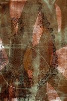 Mixed media abstracte kunst in donkere kleuren.