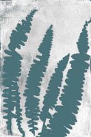 Monotype print van weidebloemen en planten in prachtig groenblauw en wit.