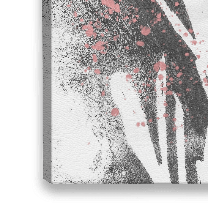 Koop dit abstracte kunstwerk Moderne botanische minimalistische kunst. Abstracte plant in zwart met roze spetters. van Dina Dankers op canvas, aluminium dibond, (ingelijste) fotoprint, behang en ArtFrame, op maat geprint in Fine-Art kwaliteit.