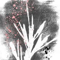 Moderne botanische minimalistische kunst. Abstracte plant in zwart met roze spetters. van Dina Dankers