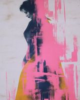 Moderne mixed media collage in neon roze en een snufje geel. Dit werk knalt van je muur, dus als je echt een statement wil maken, ben je met dit werk aan het juiste adres ;-)