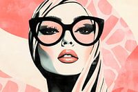 Een fascinerend portret dat inspireert met krachtige kleuren en een stijlvolle uitstraling. De geaccentueerde ogen en de grote, elegante bril geven het beeld een vleugje glamour. Deze kunst zou een perfect middelpunt zijn in de woonkamer, waar stijl en persoonlijkheid samenkomen.