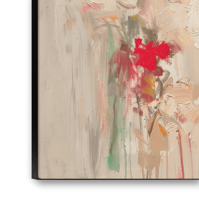 Moderne en abstracte bloemen. Kies zelf het formaat en materiaal bij dit werk en maak het helemaal passend voor jouw interieur. Een echte blikvanger!
