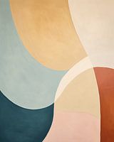 Moderne en abstracte vormen in bohemian stijl. In de kleuren roze, blauw, terracotta en geel. Kies zelf het formaat en materiaal bij dit werk en maak het helemaal passend voor jouw interieur.