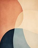 Moderne en abstracte vormen in bohemian stijl. In de kleuren roze, blauw, terracotta en geel. Kies zelf het formaat en materiaal bij dit werk en maak het helemaal passend voor jouw interieur.