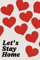 Deze moderne illustratie combineert eenvoudige vormen met een krachtige boodschap. Rode harten, helder en opvallend, zweven over een witte achtergrond, wat een gevoel van liefde en rust creëert. De zwarte tekst Let's Stay Home versterkt het idee van comfort en gezelligheid thuis, perfect voor een interieur dat warmte en eenvoud…