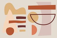 Moderne, hippe collage met geometrische en organische vormen in mooi op elkaar afgestemde kleuren. Minimalisitisch abstract in aardetinten en pastelkleuren. Door de vormen op deze manier te combineren ontstaat er een speelse compositie. Digitale illustratie / collage. Mooi aan iedere muur!