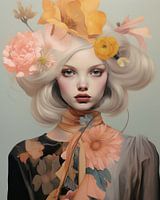 Moderne illustratie "Flower girl". Een portret van een meisje met bloemen op haar hoofd. Kies voor dit unieke werk zelf de afmetingen en het materiaal. Zeker weten dat je positieve reacties krijgt op deze bijzondere blikvanger!