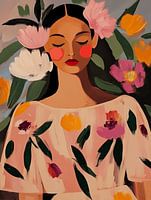 Blossoms of SerenityCarla Van Iersel Modern portret, illustratie in zachte kleurenCarla Van Iersel