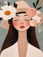 Moderne illustratie, portret van een meisje met bloemen. Een bijzondere blikvanger voor je interieur! Kies zelf het formaat en materiaal bij dit werk en maak het helemaal naar wens.