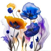 Dit moderne kunstwerk betovert de kijker met zijn surrealistische schoonheid. Het toont fantasie klaprozen in een ongewone mix van kleuren, variërend van diepblauw tot helder oranje en mystiek paars. De digitale technieken die zijn gebruikt, geven de illusie dat de bloemen bijna doorzichtig en vloeibaar zijn, wat een betoverend en…