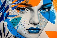 Helder blauw en levendig oranje smelten samen in dit betoverende portret dat de kijker betovert met zijn intense ogen. De harmonieuze kleurencombinaties en artistieke elementen voegen een modern tintje toe aan elke kamer en maken het perfect voor een stijlvolle woonkamer of creatief kantoor. Een echte blikvanger!