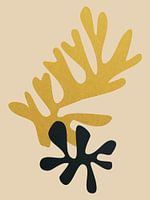 Bloemenschilderijen van Fresh Fine Art: Dit bloemenschilderij toont een boeket van abstracte organische bladeren en planten als een schilderij in subtiele en warme kleuren.