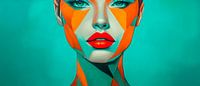 Hier ontvouwt zich een fascinerend samenspel van gedurfde kleuren en geometrische vormen. De opvallende, heldere lippen en intense ogen stralen een onmiskenbare aanwezigheid uit die elke kamer zal opfleuren. Dit kunstwerk is perfect voor de woonkamer, voegt een moderne, artistieke toets toe aan je huis en stimuleert spannende gesprekken.