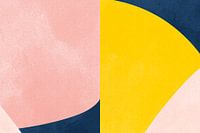 Moderne en abstracte vormen en lijnen in marineblauw, zachtroze, geel en roze. Met dit werk maak je echt een kleurstatement.