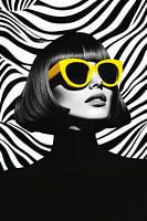 Moderne vrouw met gele zonnebril - Zwart en wit van Poster Art Shop