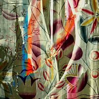 Die van haar zijn handgeschilderde textielontwerpen uit de jaren 30 van de vorige eeuw, die van mij zijn geschilderd met acrylverf in wild weer die mijn stormachtige kustbestaan uitbeeldt, hier in Dorset in het Verenigd Koninkrijk in de jaren 2025.