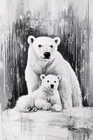 Dit prachtige monochrome ontwerp toont een moederijsbeer met haar jong, rustend samen in een serene en koude omgeving. Het gedetailleerde gebruik van zwart-wit tinten geeft het beeld een elegante en minimalistische uitstraling, terwijl de beren een gevoel van warmte en bescherming uitstralen. Perfect voor een modern interieur of een…