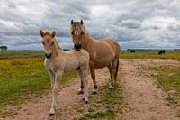 Mutter und Kind Fjordpferde in einem Naturschutzgebiet