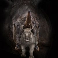 Koop dit portret Moeder en kind, neushoorn van Bert Hooijer op canvas, aluminium dibond, (ingelijste) fotoprint, behang en ArtFrame, op maat geprint in Fine-Art kwaliteit.