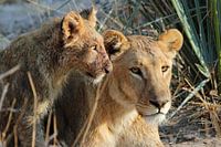 Tijdens gamedrive troffen we deze moeder met jong die net door de rivier waren gekomen in Mma Dinare dicht bij Okavango, Moremi, Savute Botswana