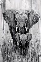 Deze prachtige kunstafbeelding toont een intieme en ontroerende band tussen een moederolifant en haar kalf, uitgevoerd in een monochrome stijl. Het schilderij benadrukt kracht en bescherming, met oog voor natuurlijke details. Perfect voor elk modern interieur dat een serene en natuurlijke uitstraling verlangt, zoals een woonkamer,…