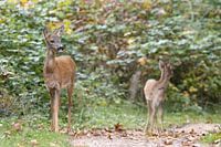 Reekalveren trekken het eerste jaar van hun leven met hun moeder op. Moeder gaat voorop, en op de achtergrond drentelt het nieuwsgierige kalfje achter haar aan.
