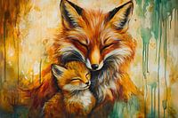 Dit prachtige ontwerp toont een liefdevol moment tussen een moeder vos en haar jong. De warme tinten oranje, rood en geel brengen een gevoel van geborgenheid en harmonie over. De artistieke stijl geeft een speelse en expressieve uitstraling, perfect om een ruimte op te fleuren en warmte toe te voegen. Ideaal als wanddecoratie in een…
