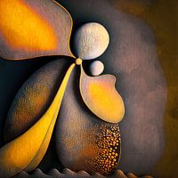 Abstracte symbolische kunst met als thema de liefde en bescherming van een moeder voor haar kind.
