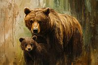 Moederbeer met jong in bos van Imperial Art House