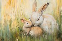 Koop dit landschapskunstwerk Moederkonijn met baby in gras van Imperial Art House op canvas, aluminium dibond, (ingelijste) fotoprint, behang en ArtFrame, op maat geprint in Fine-Art kwaliteit.